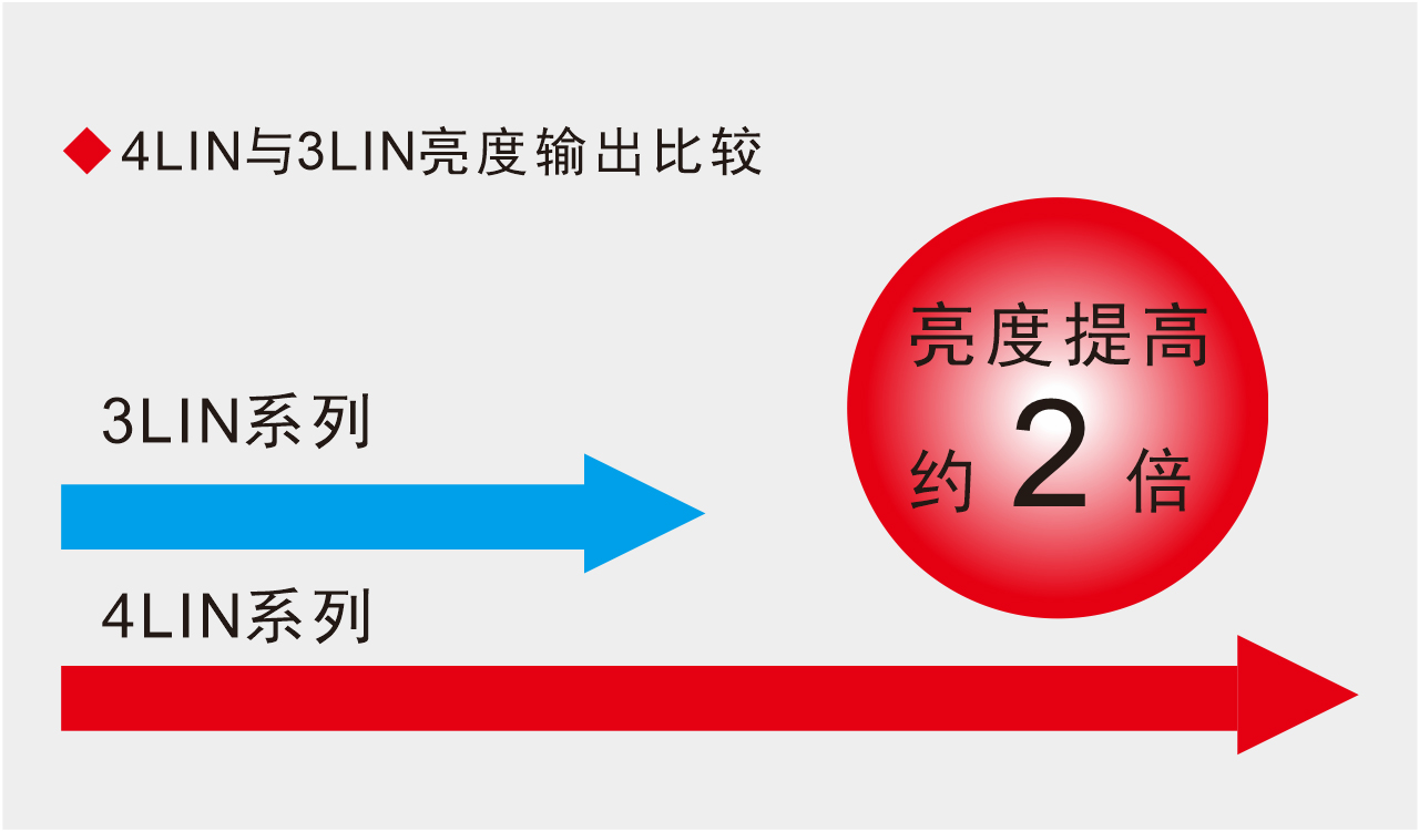4LIN系列亮度較3LIN系列提升2倍,重量減輕30%,體積減小40%。