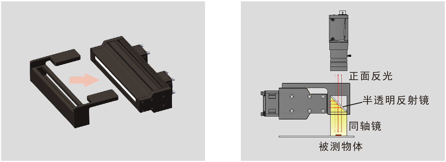 可結(jié)合同軸罩變成同軸線光源(4CONL系列),通過與同軸罩結(jié)合,通過與相機鏡頭同軸照射,使光線擴(kuò)散,對比度更清晰。