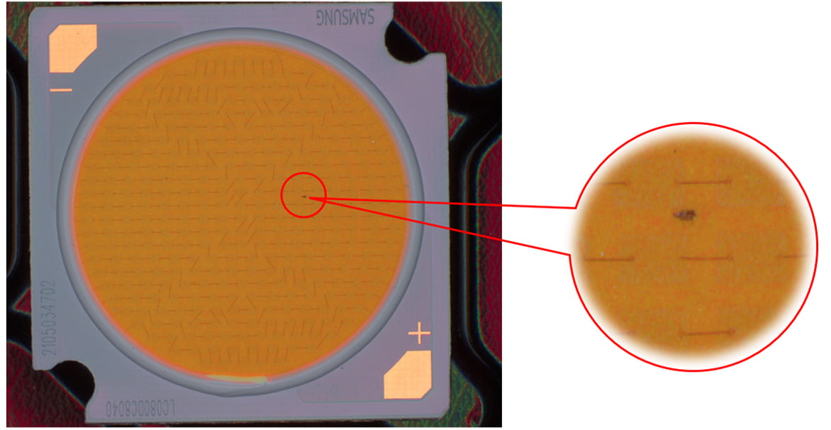 LED光源在日常生活中應(yīng)用非常廣泛,其具有亮度高,發(fā)光效率高,節(jié)能環(huán)保,壽命長,安全可靠等優(yōu)點。LED燈珠是LED光源的核心元件,其封裝過程當中往往存在不良,如黑點、毛絮、氣泡等,早期一般使用人眼檢測,這種檢測方式往往因眼部疲勞造成漏檢、誤檢,最終導(dǎo)致產(chǎn)品質(zhì)量無法保證。