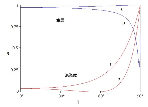 光波在界面發(fā)生反射跟透射時(shí),可以將其振動(dòng)分解成垂直于入射面(s分量)和平行于入射(P分量)的兩個(gè)分量。通俗地理解,不同的材質(zhì),S分量和P分量的比值不一樣。所以,在偏振鏡的應(yīng)用案例里,不同的檢測(cè)對(duì)象由于其材質(zhì)不一樣能夠消除反光的程度也不一樣。