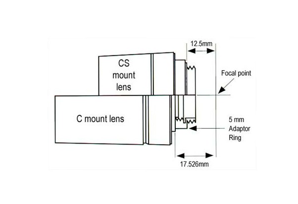 C接口和CS接口是工業(yè)相機(jī)與鏡頭聯(lián)接最常見(jiàn)的國(guó)際標(biāo)準(zhǔn)接口,為1英寸-32UN英制螺紋連接口,C型接口和CS型接口的螺紋連接是一樣的,區(qū)別在于C型接口的后截距為17.5mm,CS型接口的后截距為12.5mm。所以CS型接口的工業(yè)相機(jī)可以和C口及CS口的鏡頭連接使用,只是使用C口鏡頭時(shí)需要加一個(gè)5mm的接圈;C型接口的工業(yè)相機(jī)不能用CS口的鏡頭。