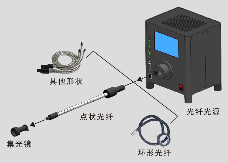 三色光纖光源通過一臺設備實現RGB三色獨立或混光輸出,節省空間的同時,還能同步獲取三個光學成像通道,特別適合生物成像、材料分析這類需要多參數檢測的場景。