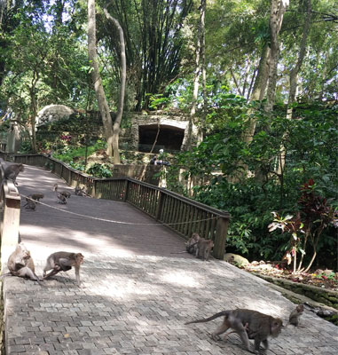園內林木蔥郁茂盛。林中生活著當地特有的巴厘獼猴。巴厘島居民認為猴子是神猴哈努曼的部下,也應該當作神靈敬奉。因此這里的猴子生活得無憂無慮,還有專人喂養。