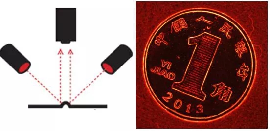 2. 暗場照明:暗場照明是相對于物體表面提供低角度照明。