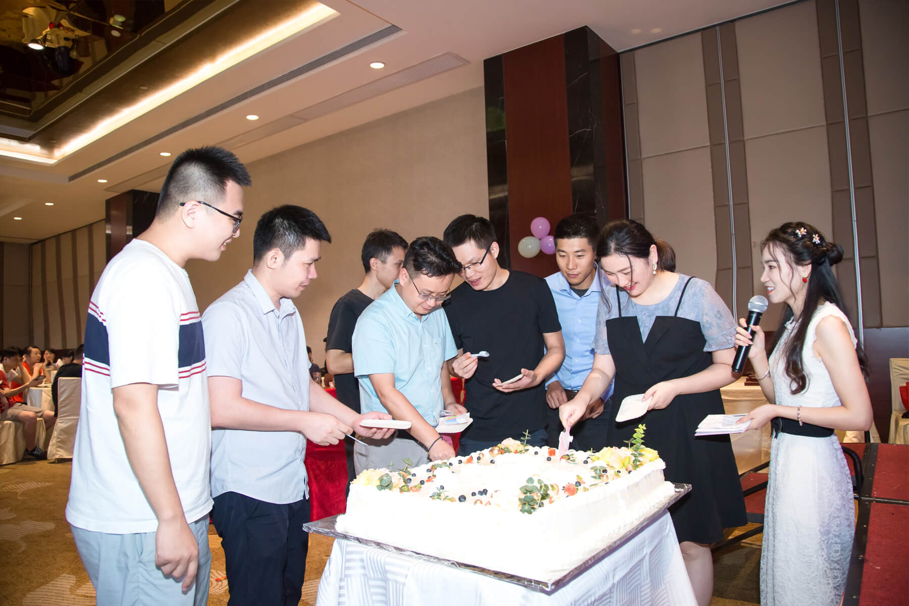 慶典分為頒發(fā)獎品和晚宴兩部分,熱鬧的晚會從領導致詞、美味的蛋糕拉開帷幕。