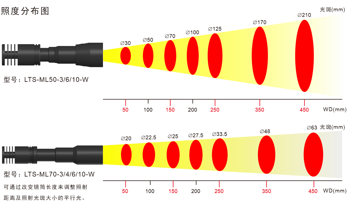 2.可以在不同的工作距離下調節到最合適的亮度和光斑大小