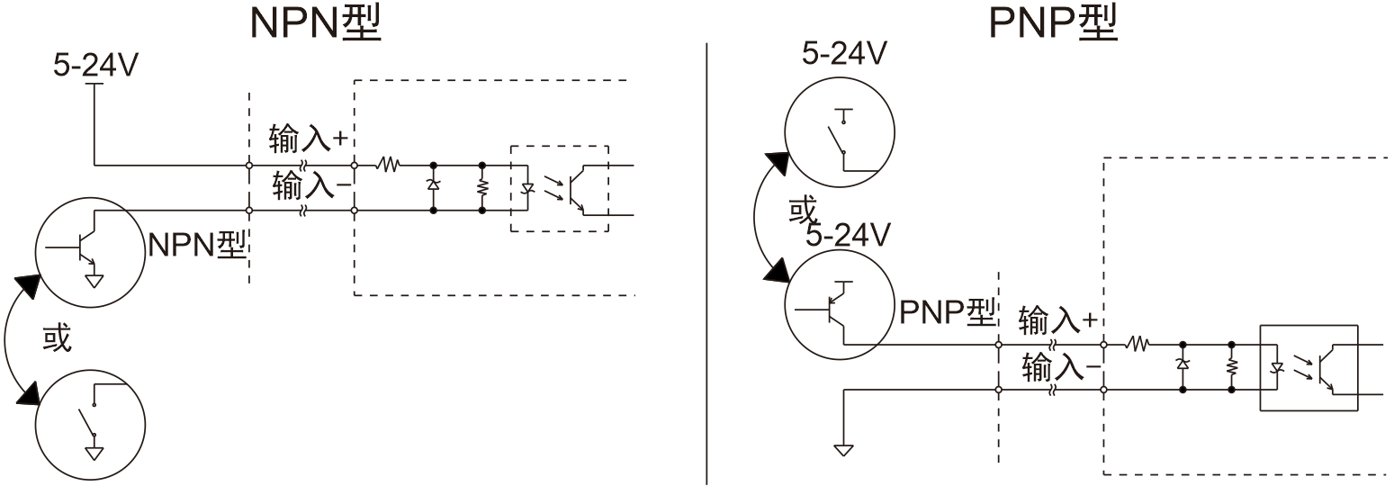 當(dāng)外部連接觸發(fā)信號(hào)時(shí),觸發(fā)“+”輸入高電平5-24V “-”接地時(shí),光源亮。