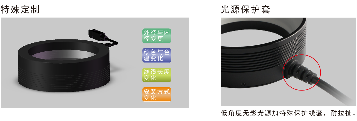 * 紫外和紅外光源可根據(jù)客戶要求定制。 * 發(fā)光峰值波長/相關色溫:紅色:620-630nm,綠色:525-530nm,藍色:465-470nm,白色:6600K(色溫) |