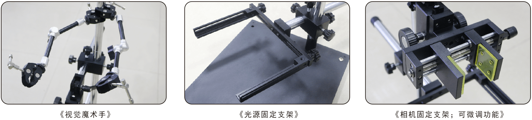 1.功能一:夾具固定寬度可變,18-82mm,可以滿足各種工業相機以及智能相機