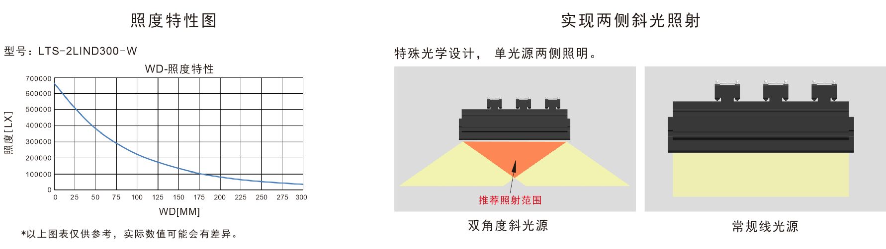 1.采用特殊光學設計結構,實現兩側斜光照射