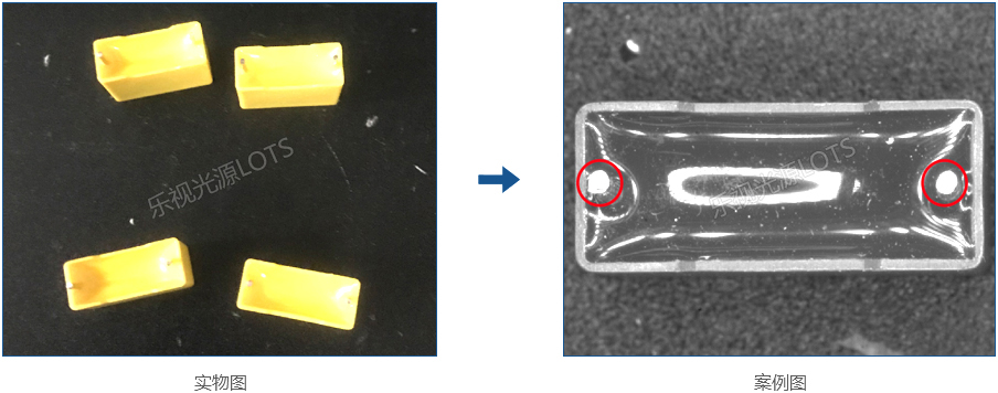 連接器針腳未露在塑膠表面,形狀大小不一,同軸光垂直照射,使塑膠內部 針腳均勻,穩定的呈現。